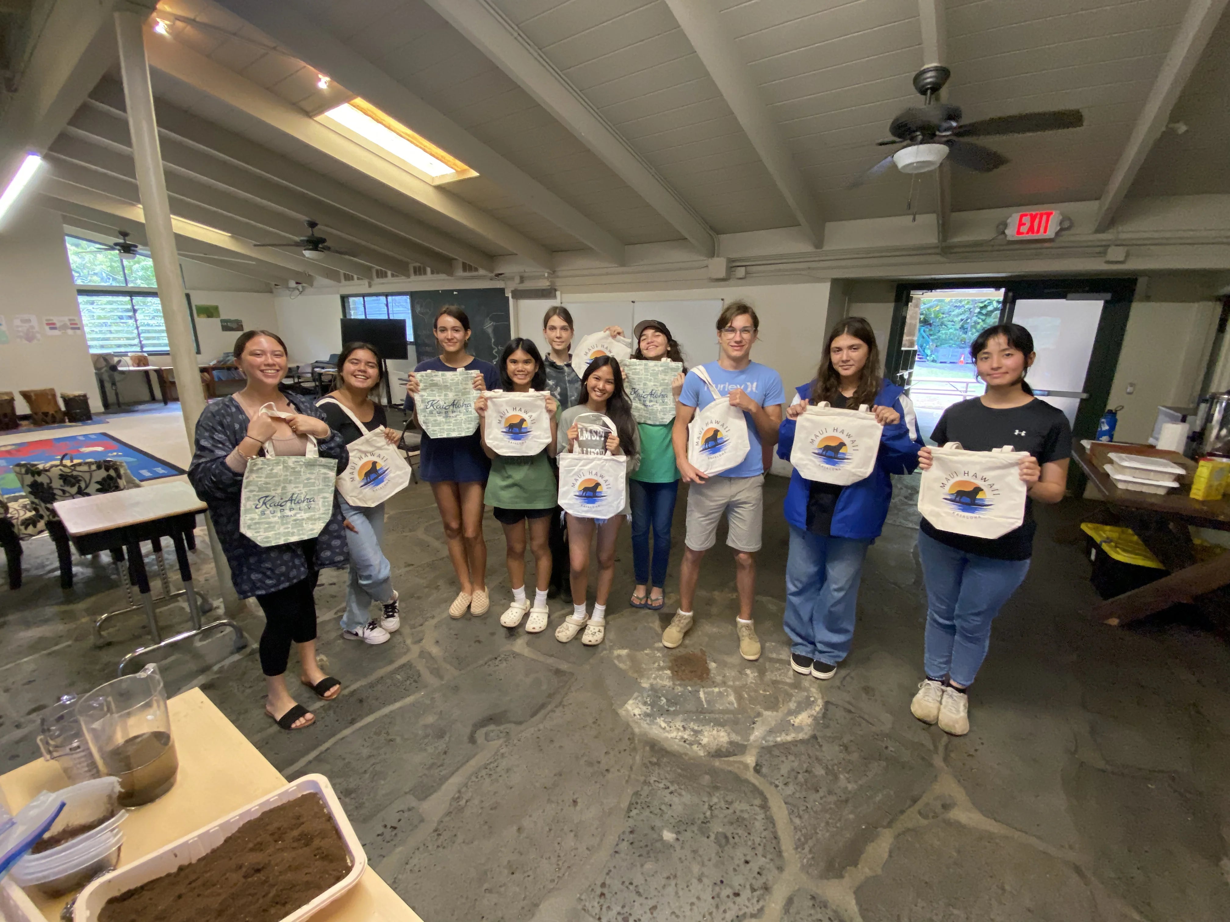 Students in the classroom with our tapa and poppy canvas bags during the Mauka event. (Photo courtesy of Maui Huliau Foundation)