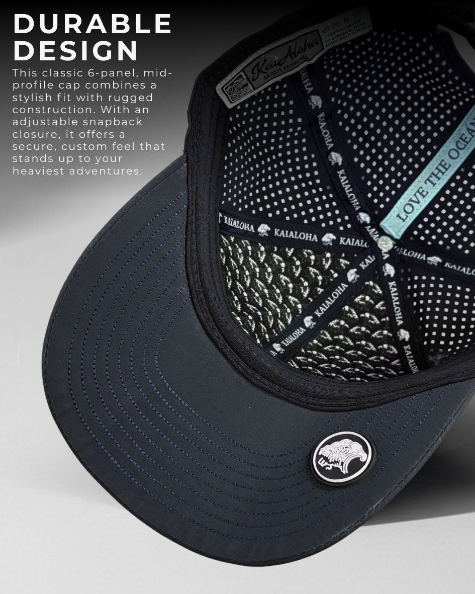 Meet the Resist Snapback— your new water-ready companion. This cap floats, so it won't disappear into the waves when you're catching breaks or cruising the coast. The hidden patch under the brim gives your thumb a comfy spot to grip, keeping your hat exactly where you want it. Built for adventure, styled for the moment.